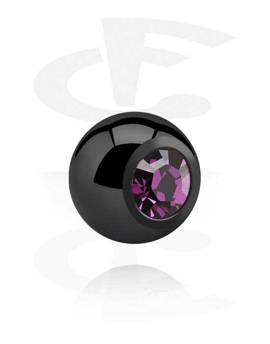 Kugle til stav med gevind (kirurgisk stål, sort, blank finish) med Krystalsten