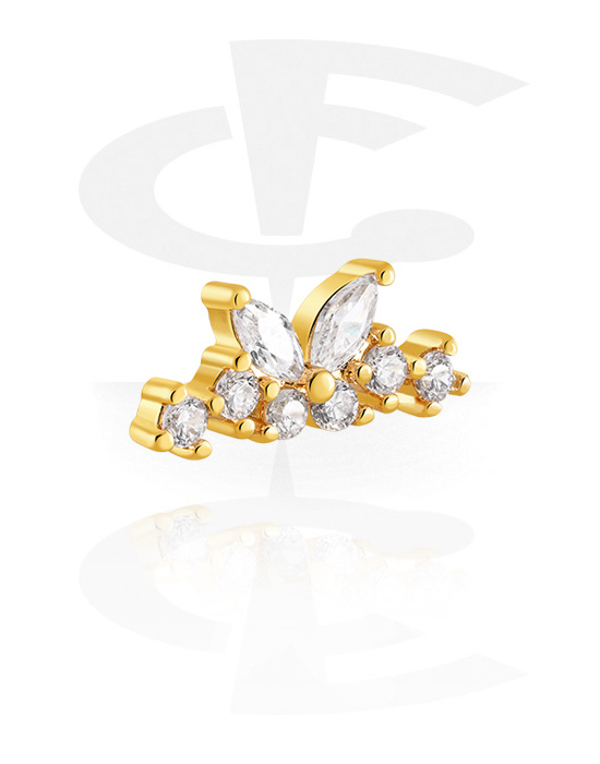 Vedhæng til stav med gevind (pletteret messing, guld) med Sommerfuglemotiv og krystaller