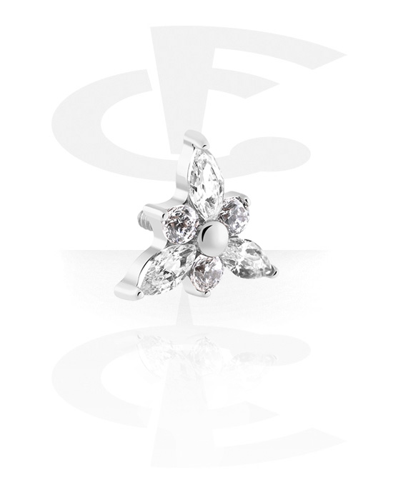 Vedhæng til stav med indvendigt gevind (titan, sølv, blank finish) med krystaller