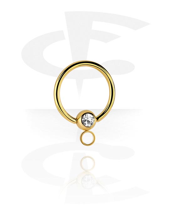 Ring med kuglelukning (kirurgisk stål, guld, blank finish) med Krystalsten og hoop til vedhæng