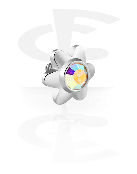 Vedhæng til 1,2 mm stav med indvendigt gevind (kirurgisk stål, sølv, blank finish) med blomstermotiv og Krystalsten