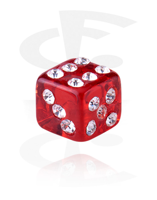 Vedhæng til 1,6 mm stav med gevind (kirurgisk stål, sølv, blank finish) med terningmotiv og krystaller