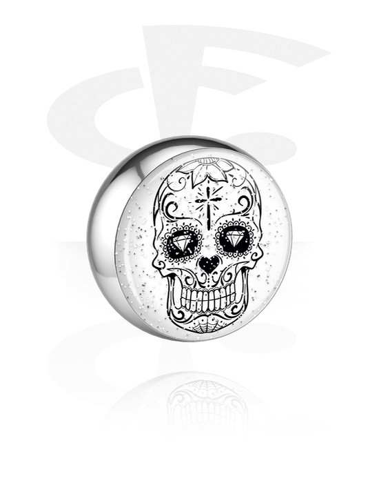 Kugle til 1,6 mm stav med gevind (kirurgisk stål, sølv, blank finish) med sort-hvid sugar skull "Dia de Los Muertos"-motiv