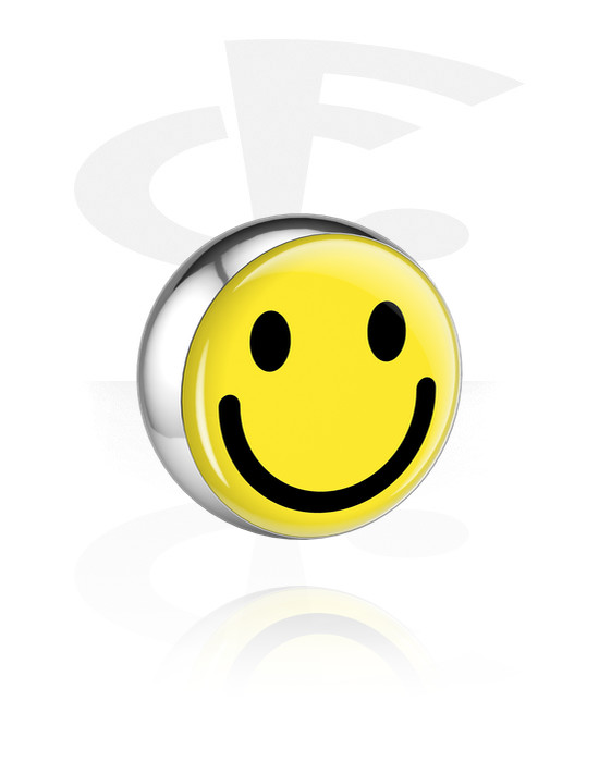 Kugle til 1,6 mm stav med gevind (kirurgisk stål, sølv, blank finish) med smiley-motiv