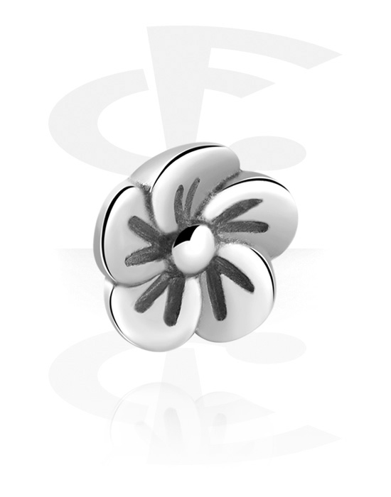 Vedhæng til 1,6 mm stav med gevind (kirurgisk stål, sølv, blank finish) med blomstermotiv