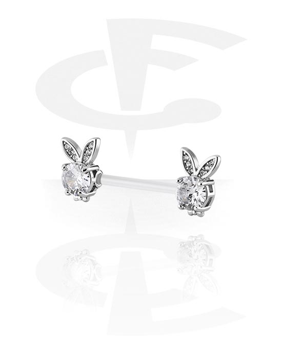 Nipple Barbell (bioflex, transparent) med nuttet kaninmotiv og Tekst: "Allergic to stupid people
