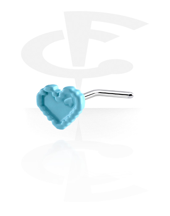 L-formet næsestud (kirurgisk stål, sølv, blank finish) med Hjertemotiv