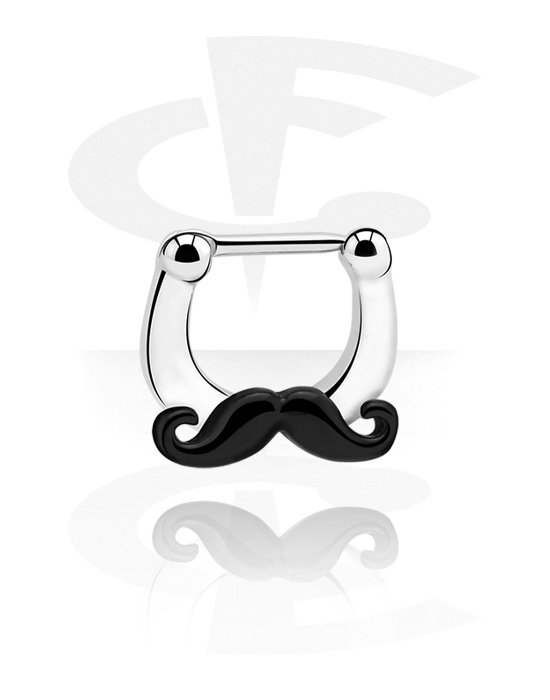 Septum-clicker (kirurgisk stål, sølv, blank finish) med overskægfront