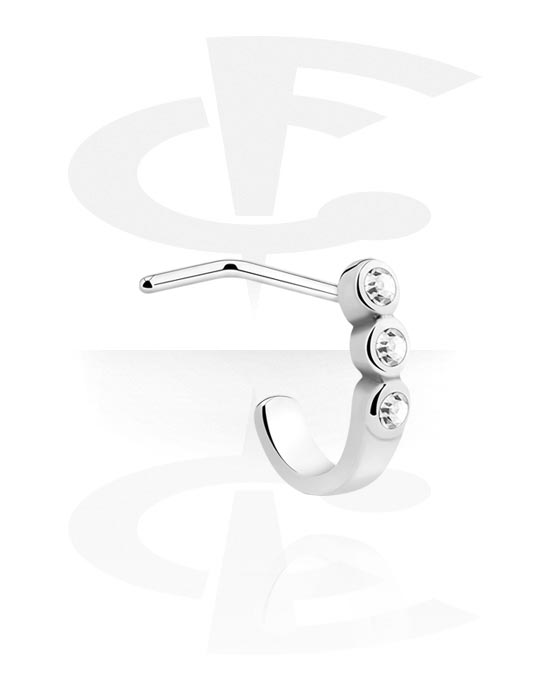 L-formet næsestud (kirurgisk stål, sølv, blank finish) med krystaller