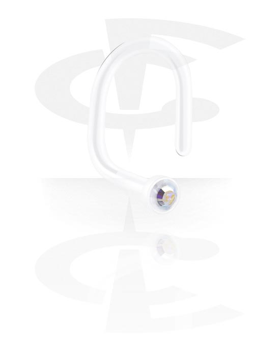 With its curved stem, this delicate Jewelled nose screw will sit securely in your nose piercing. Crystals available in various colours.