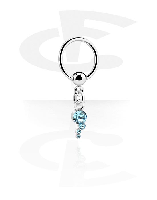 Ring med kuglelukning (kirurgisk stål, sølv, blank finish) med charm og krystaller