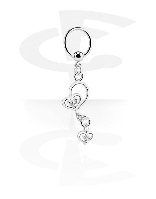 Ring med kuglelukning (kirurgisk stål, sølv, blank finish) med charm og krystaller