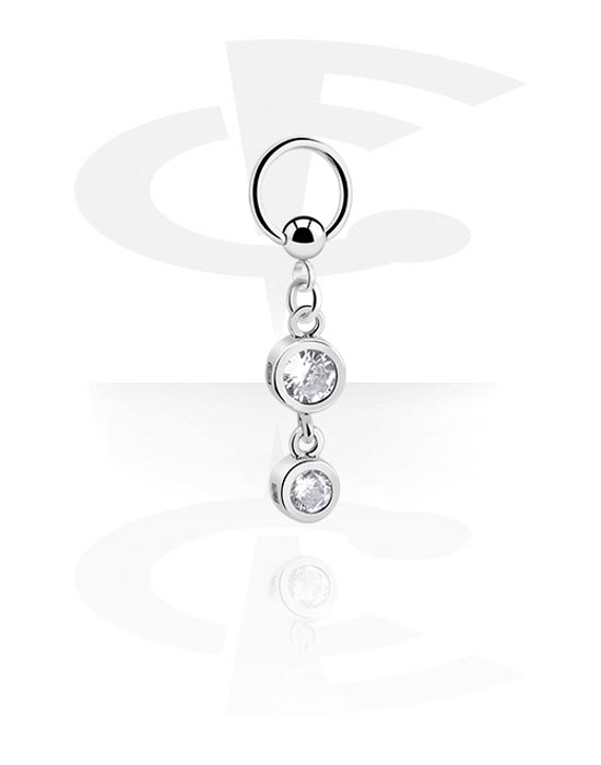 Ring med kuglelukning (kirurgisk stål, sølv, blank finish) med kæde og krystaller
