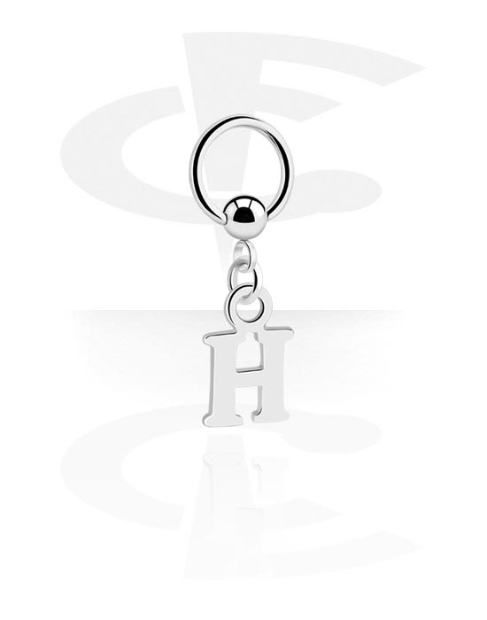 Ring med kuglelukning (kirurgisk stål, sølv, blank finish) med charm med bogstavet H