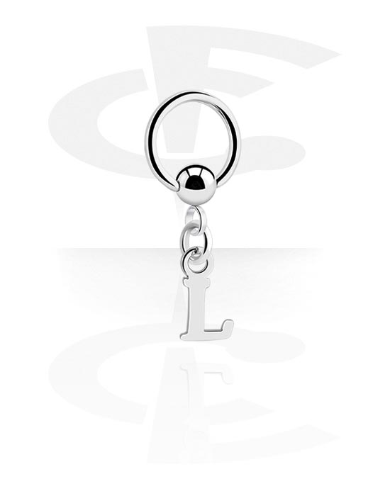 Ring med kuglelukning (kirurgisk stål, sølv, blank finish) med charm med bogstavet L