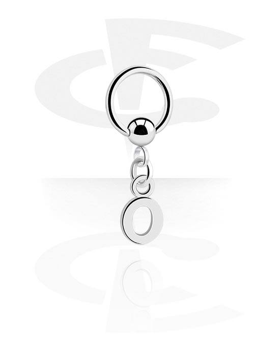 Ring med kuglelukning (kirurgisk stål, sølv, blank finish) med charm med bogstavet O