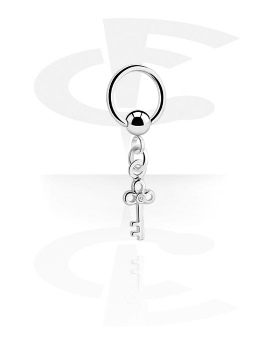 Ring med kuglelukning (kirurgisk stål, sølv, blank finish) med Nøgle og Krystalsten