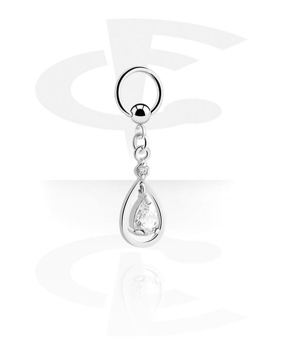 Ring med kuglelukning (kirurgisk stål, sølv, blank finish) med charm og krystaller