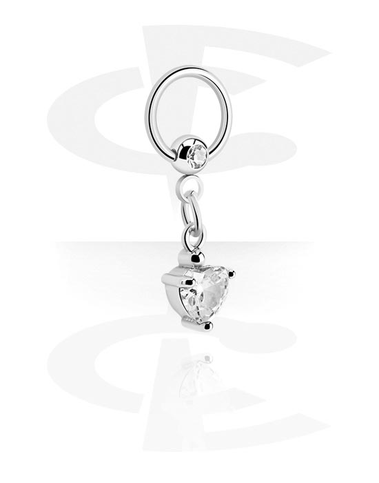 Ring med kuglelukning (kirurgisk stål, sølv, blank finish) med charm og Krystalsten