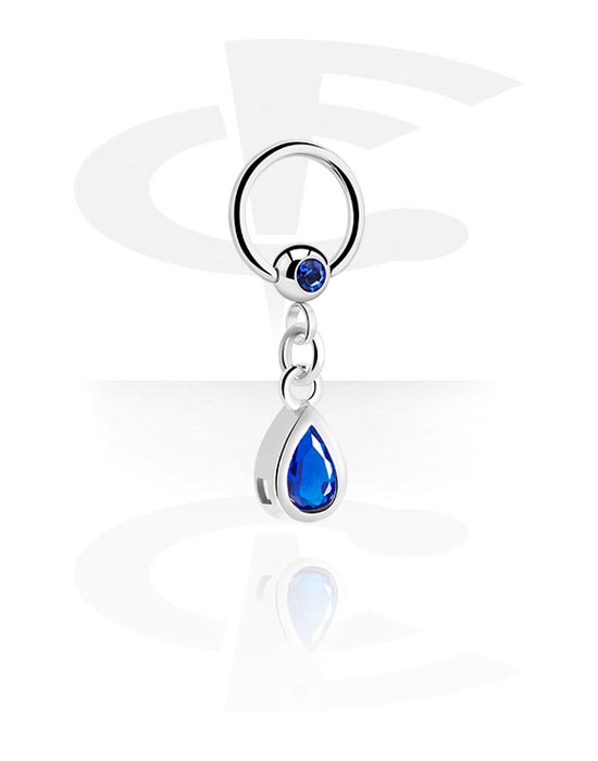 Ring med kuglelukning (kirurgisk stål, sølv, blank finish) med Krystalsten og charm