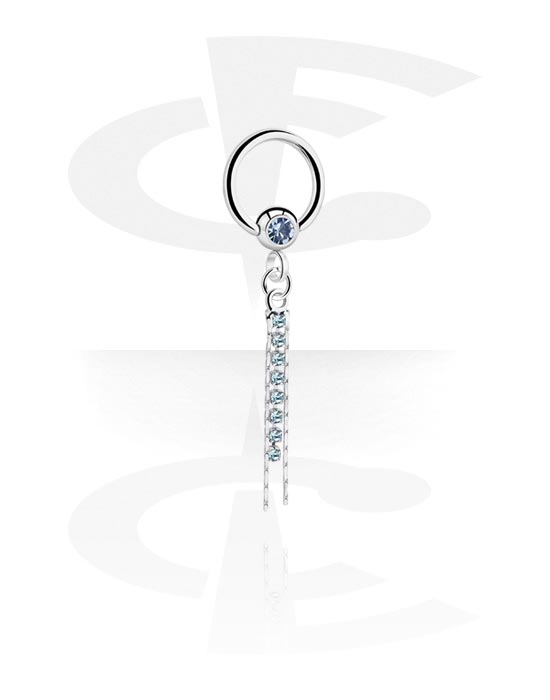 Ring med kuglelukning (kirurgisk stål, sølv, blank finish) med Krystalsten og charm