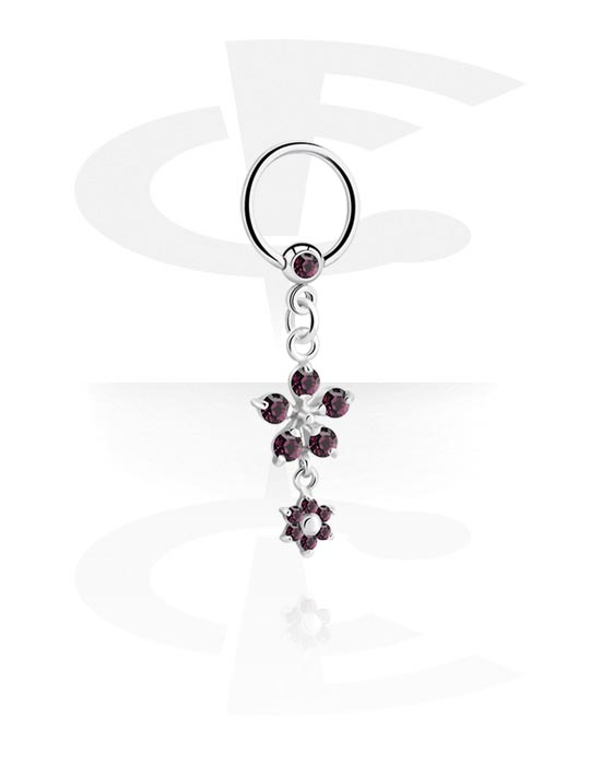 Ring med kuglelukning (kirurgisk stål, sølv, blank finish) med Krystalsten og blomstercharm