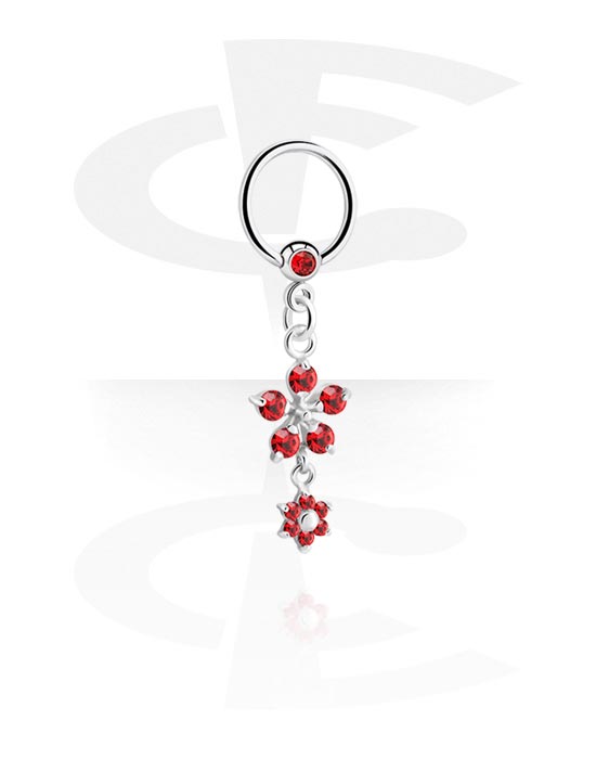 Ring med kuglelukning (kirurgisk stål, sølv, blank finish) med Krystalsten og blomstercharm