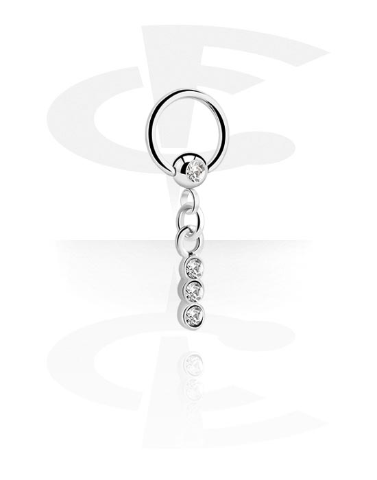 Ring med kuglelukning (kirurgisk stål, sølv, blank finish) med Krystalsten og charm