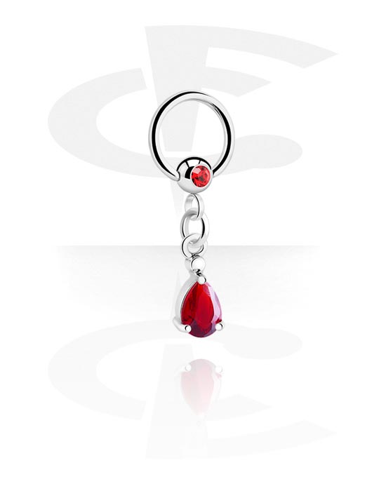 Ring med kuglelukning (kirurgisk stål, sølv, blank finish) med Krystalsten og charm