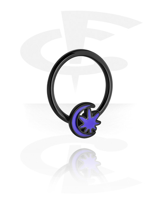Ring med kuglelukning (kirurgisk stål, sort, blank finish) med Half moon design