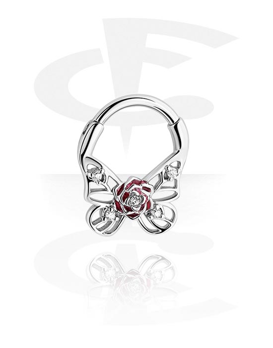 Piercing-clicker (kirurgisk stål, sølv, blank finish) med sommerfugl og rosemotiv