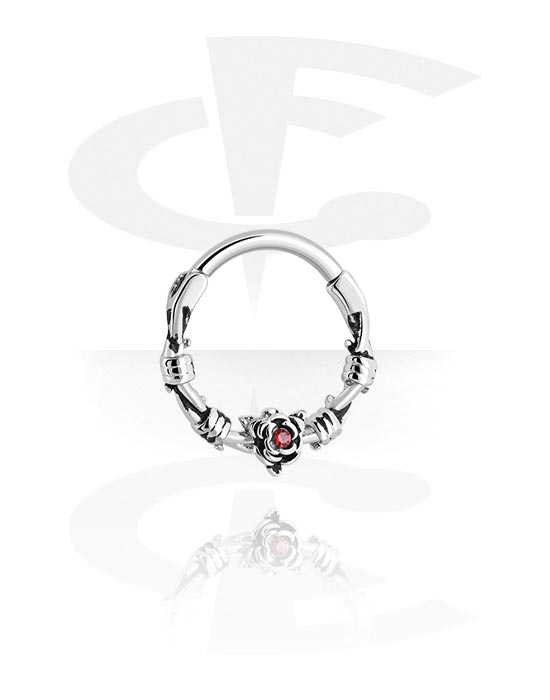 Piercing-clicker (kirurgisk stål, sølv, blank finish) med rosemotiv og Krystalsten