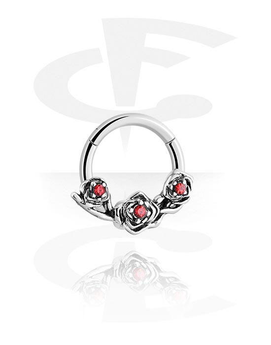 Piercing-clicker (kirurgisk stål, sølv, blank finish) med rosemotiv og krystaller