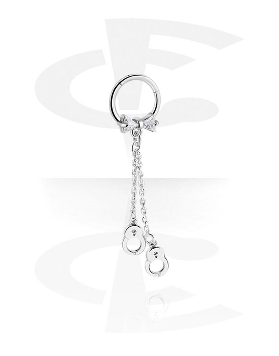 Piercing-clicker (kirurgisk stål, sølv, blank finish) med håndjernsvedhæng og krystaller