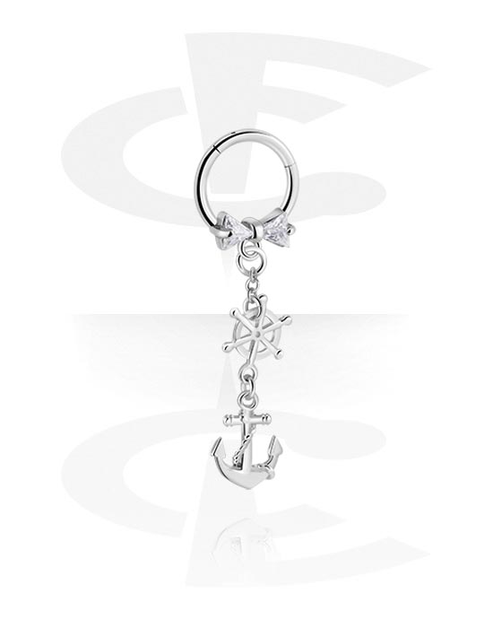 Piercing-clicker (kirurgisk stål, sølv, blank finish) med ankervedhæng og krystaller