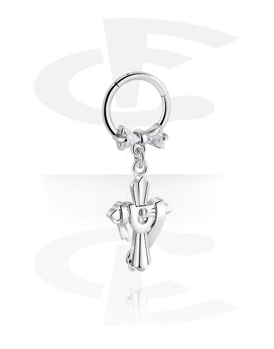 Piercing-clicker (kirurgisk stål, sølv, blank finish) med Charm med kors og krystaller