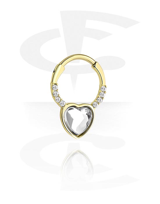 Piercing clicker (surgical steel, zircon steel, shiny finish) med Hjertemotiv og krystaller