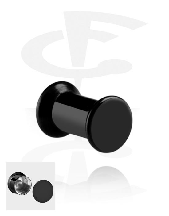 Plain black plug made of surgical steel, with a back that unscrews to reveal a tiny secret compartment! Available in various sizes. A perfect addition to just about any look.