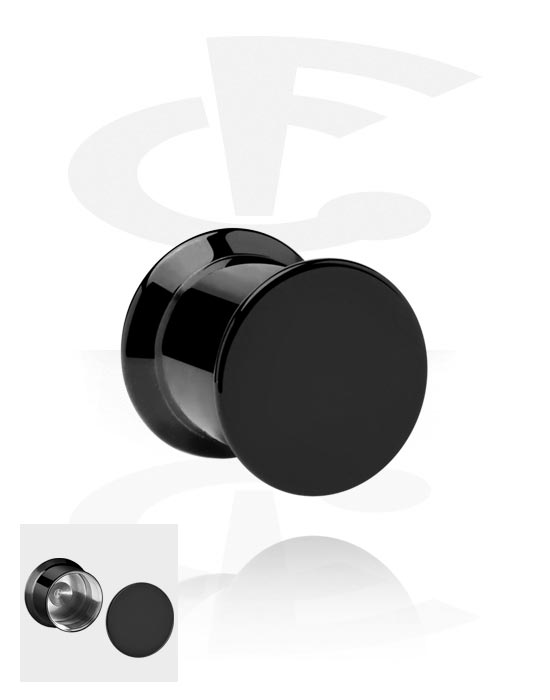 Plain black plug made of surgical steel, with a back that unscrews to reveal a tiny secret compartment! Available in various sizes. A perfect addition to just about any look.