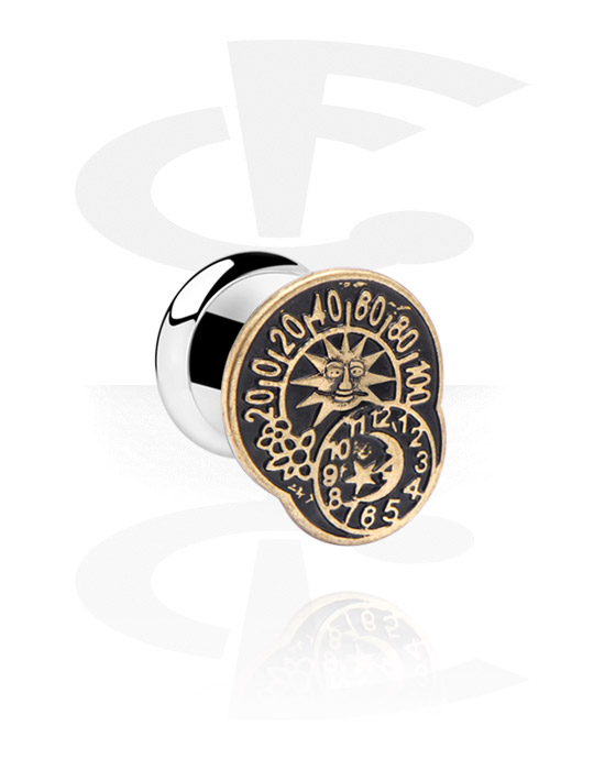 Double-flared tunnel (kirurgisk stål, sølv, blank finish) med sol og måne-motiv