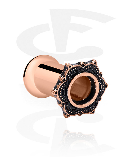 Double-flared tunnel (kirurgisk stål, rosenguld, blank finish) med Vintage blomstermotiv