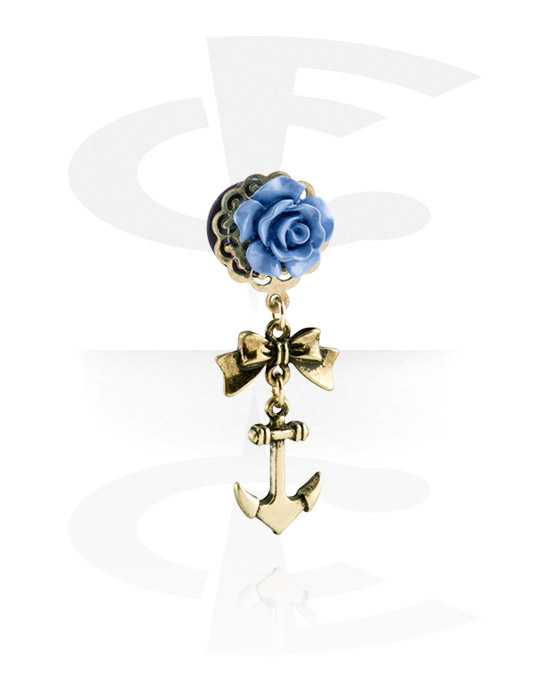 Single-flared plug (kirurgisk stål, sølv, blank finish) med rosemotiv og O-ring