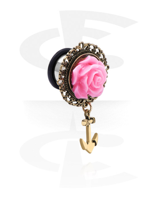 Single-flared plug (kirurgisk stål, sølv, blank finish) med rose og ankervedhæng