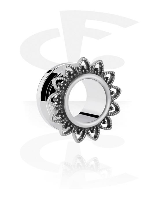 Tunnel, der skrues på (kirurgisk stål, sølv, blank finish) med blomstermotiv