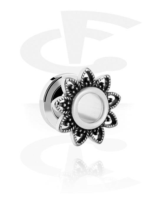 Tunnel, der skrues på (kirurgisk stål, sølv, blank finish) med blomstermotiv