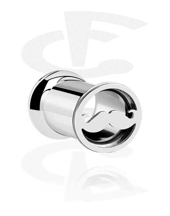 Double-flared tunnel (kirurgisk stål, sølv, blank finish) med overskægfront