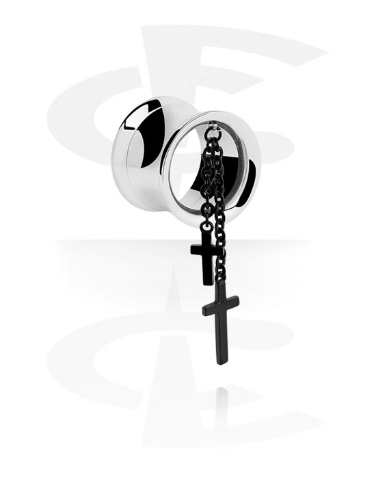 Double-flared tunnel (kirurgisk stål, sølv, blank finish) med Charm med kors