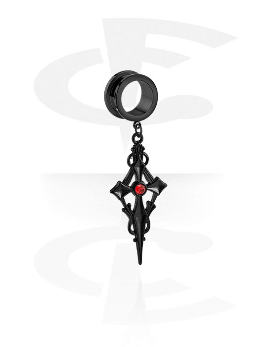 Tunnel, der skrues på (stål, sort, blank overflade) med Charm med kors og Krystalsten