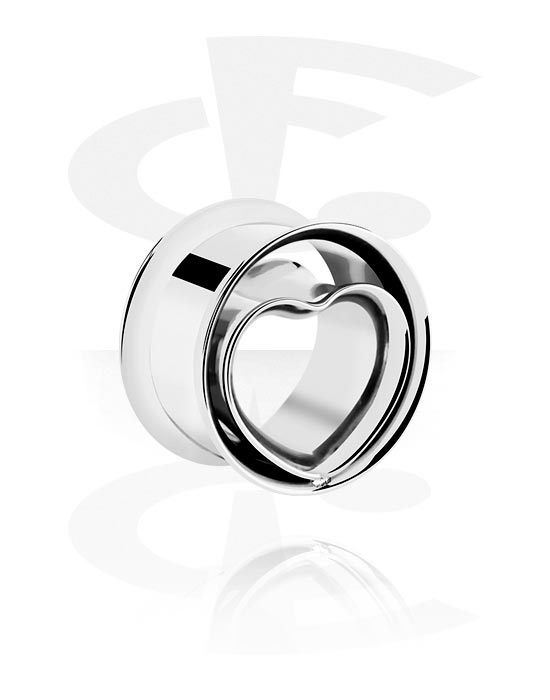 Double-flared tunnel (kirurgisk stål, sølv, blank finish) med indlagt hjertemotiv