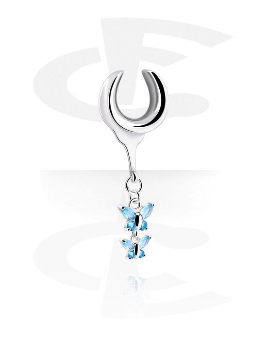 Half tunnel (stål, sølv, blank finish) med Charm med sommerfugl og krystaller